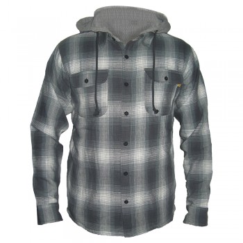 Long Sleeve Button Up Shirt with Hood 100% Cotton Heavy Flannel, 300 GSM Allover Thermal lining. Fleece Hood